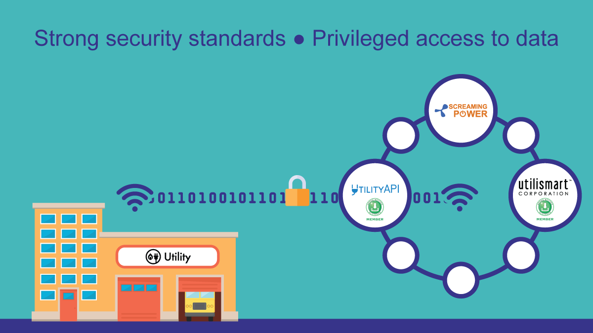 The Screaming Power-UtilityAPI-Utilismart Green Button toolset currently in production has had multiple advancements through the years to ensure cybersecurity management is the highest priority. UtilityAPI recently received SOCII Type 2 attestation and has the strongest possible commitment to delivering safe, high-quality services. UtilityAPI holds a U.S. patent for secure methods for third parties to electronically obtain authorization and interact with a public utility on a utility account holder's behalf, locate and collect the account holder's energy usage and billing data, and process and store the data using high security measures. As a result, UtilityAPI is an internationally recognized expert in the energy data security and privacy field.